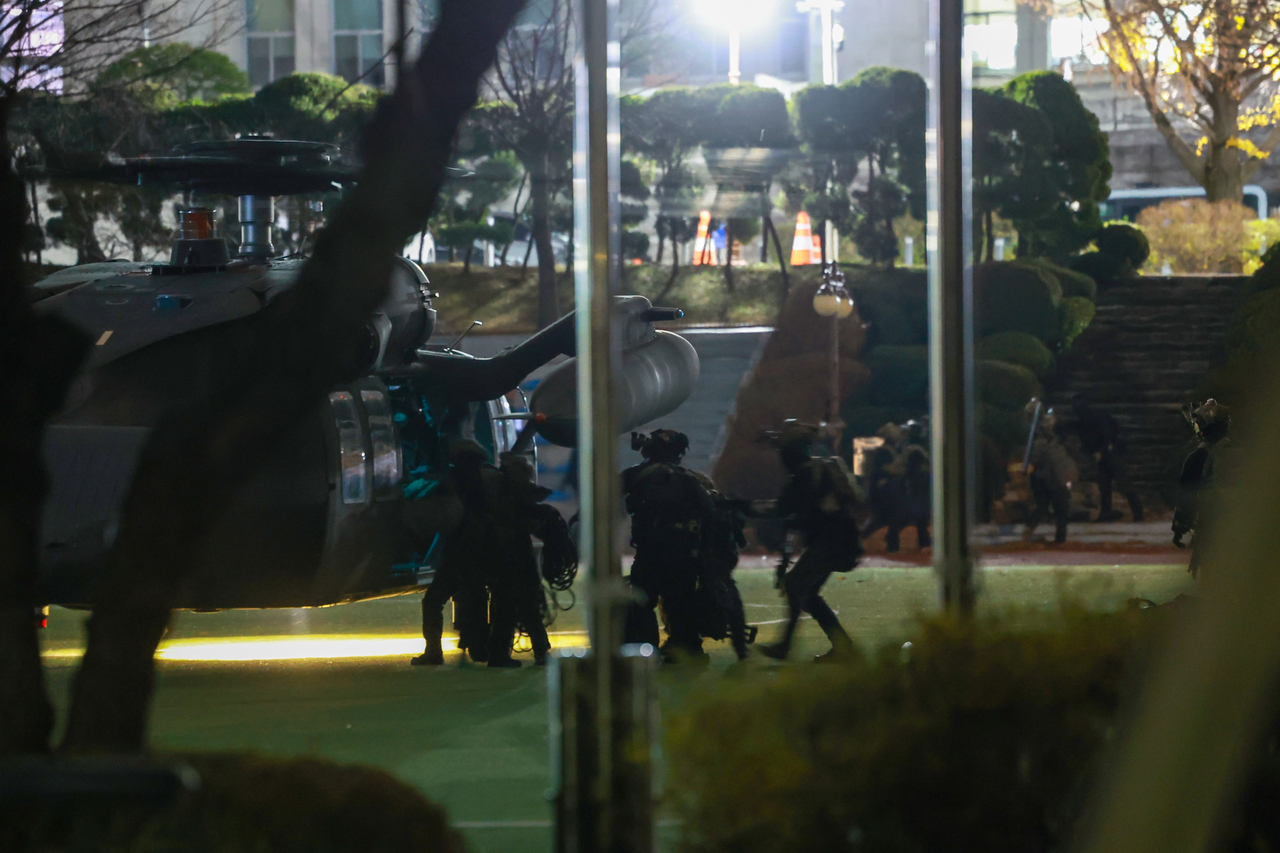 최초 지시는 바로 출동할 수 있냐고 물어봤습니다. 그래서 저는 가능하다고 했고. 그럼 빨리 국회로 출동할 준비를 해라. 헬기 12대가 올 것이다. 그 말만 듣고 부대원들을 다그쳐서 출동준비하는 데 20~30분이 걸렸던 것 같습니다.