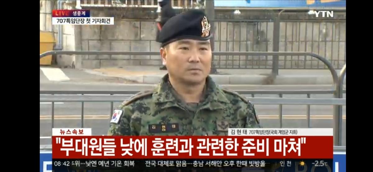 하지만 군에서도 나름 규정이라는 것이 있고 그리고 법이 있기 때문에 그에 대한 책임을 말씀드린 거고. 계엄이라는 것을 TV로 보고 나서 직후에 사령관으로부터 전화를 받고 국회로 출동하라고 했을 때 저 역시 계엄에 대한 지식이 없었습니다.